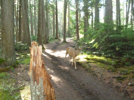 We then hiked the Sperry Chalet trail, but realized it was a 13 mile round trip with a 4000 foot elevation gain after we started (need a better map), and diverted to Fish Lake for an easier 6 mile hike. This left more time for a couple of good beers and appetizers at the lodge before we caught the shuttle back to the camp for an afternoon nap (best part of retirement). Saw 3 deer with velvet antlers at the start of the trail but luckily no bears.