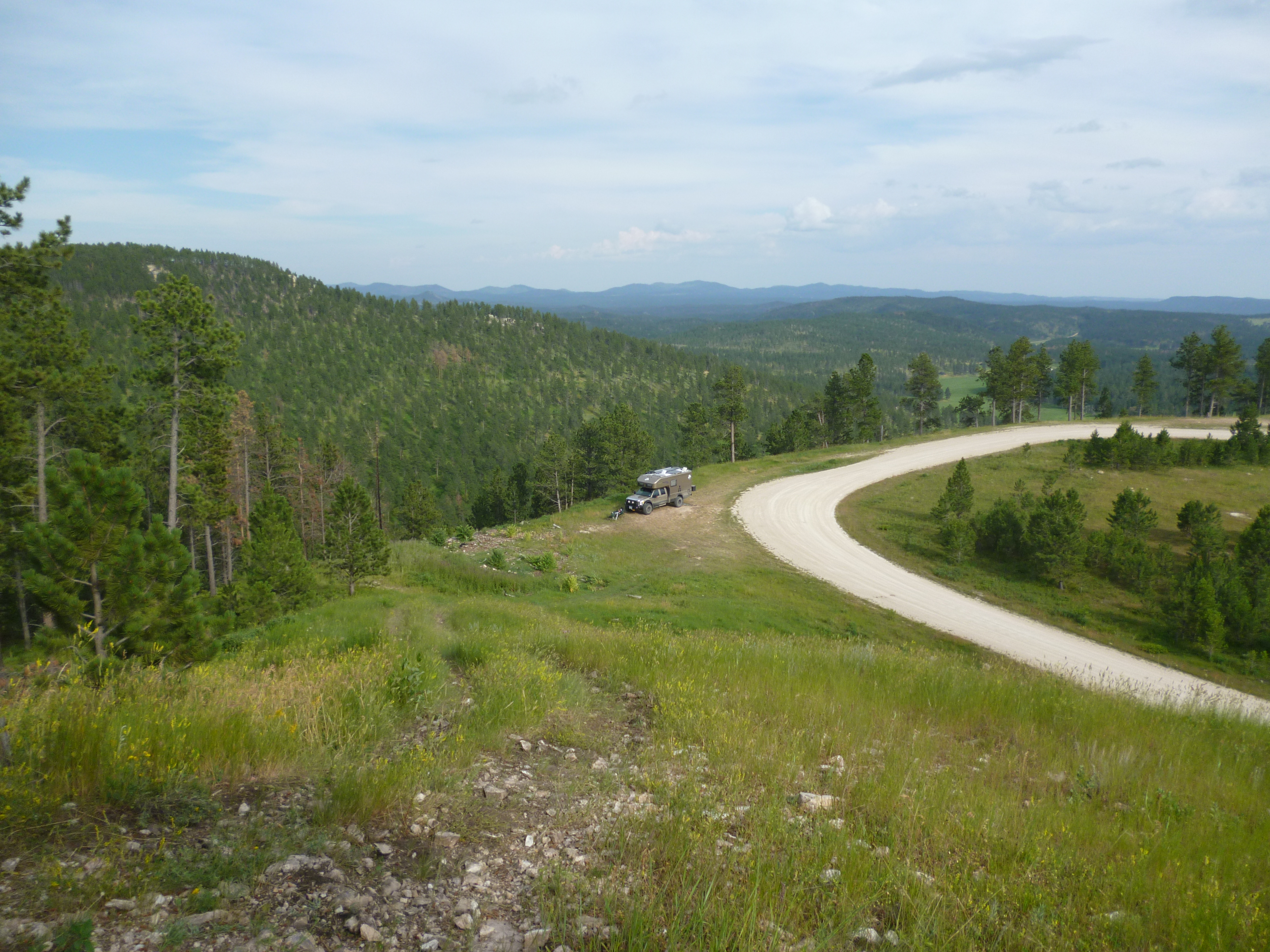 We are now in Great Falls, MT where Louis and Clark chose correctly at the fork in the river only to encountered 5 huge falls within several miles of each other (hence Great Falls) that they had to port around on their way up the mighty Missouri river. The area around here is just beautiful grasslands at the foothills to the Rockies. Check out the awesome vehicle parked in the background.