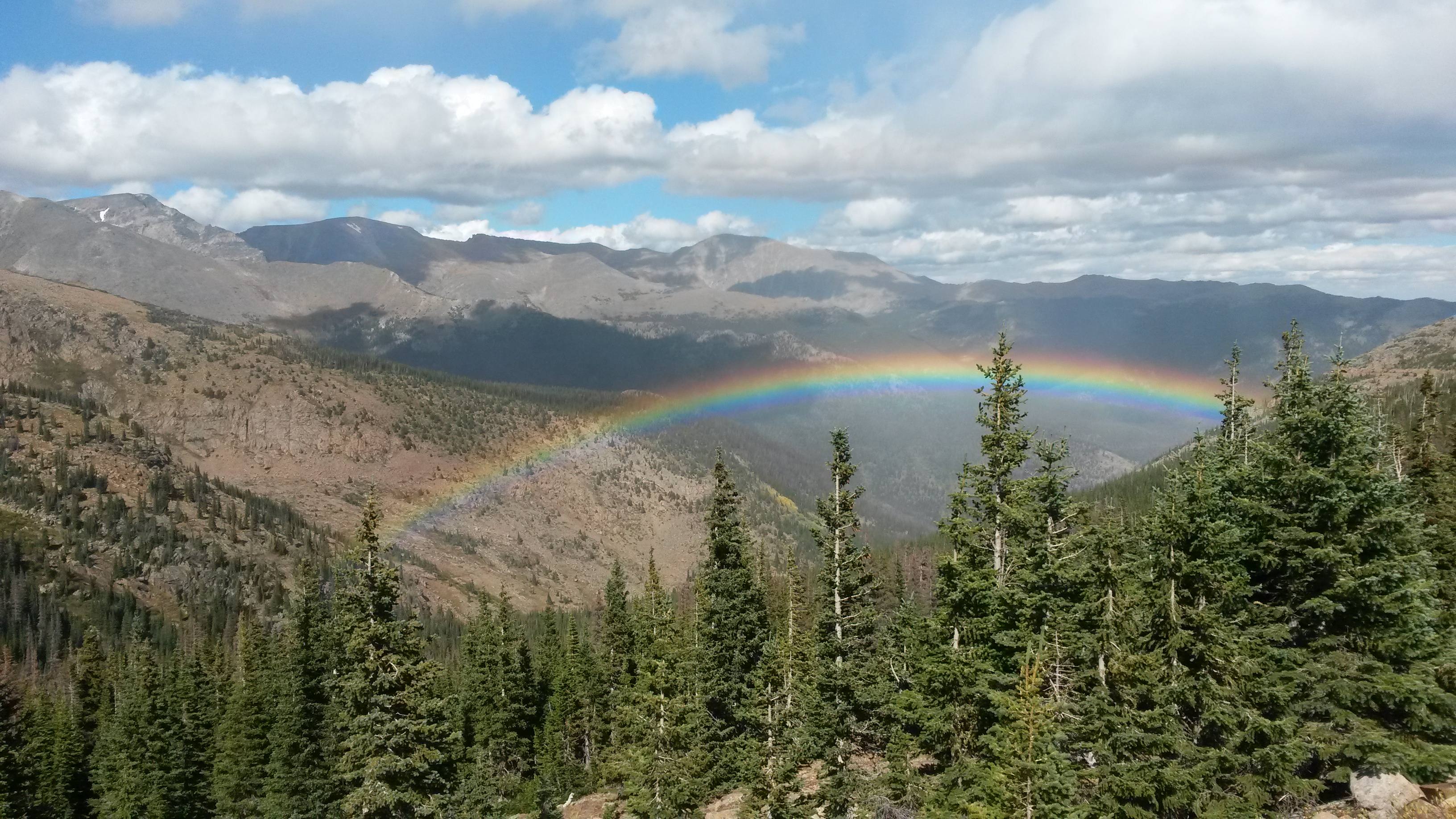 Shortly after we descended back to the parking lot it began to drizzle over some parts of the park. As we drove down the other side of the mountain we saw a rainbow in the valley below. Neither of us has ever been above a rainbow before. There was an overwhelming feeling to break out into song – “ somewhere …..”, but then again we weren’t in Kansas.