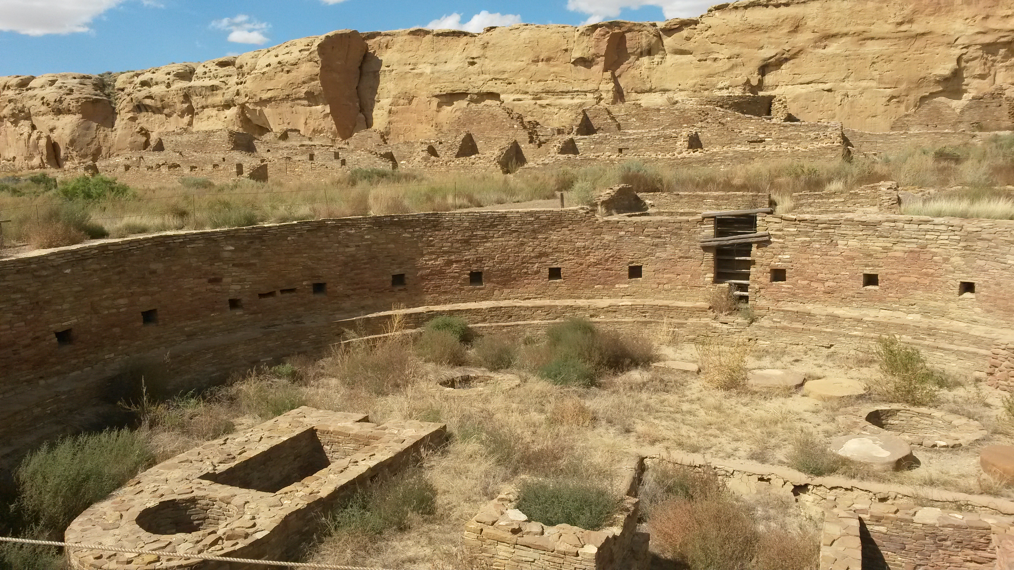 We dropped south out of Colorado and crossed into New Mexico near Chaco Canyon and the Chaco Culture National Historical Park. Neither of us had been there before so we decided to stop in and see the place. “Near” is a good description since no paved road is within 20 miles of the place. Chaco Canyon is the ancient Pueblo center that thrived between 800 and 1200 AD. What remains are the ruins of the great houses that were once the cultural centers along the migration and trade routes in the beautiful valley.