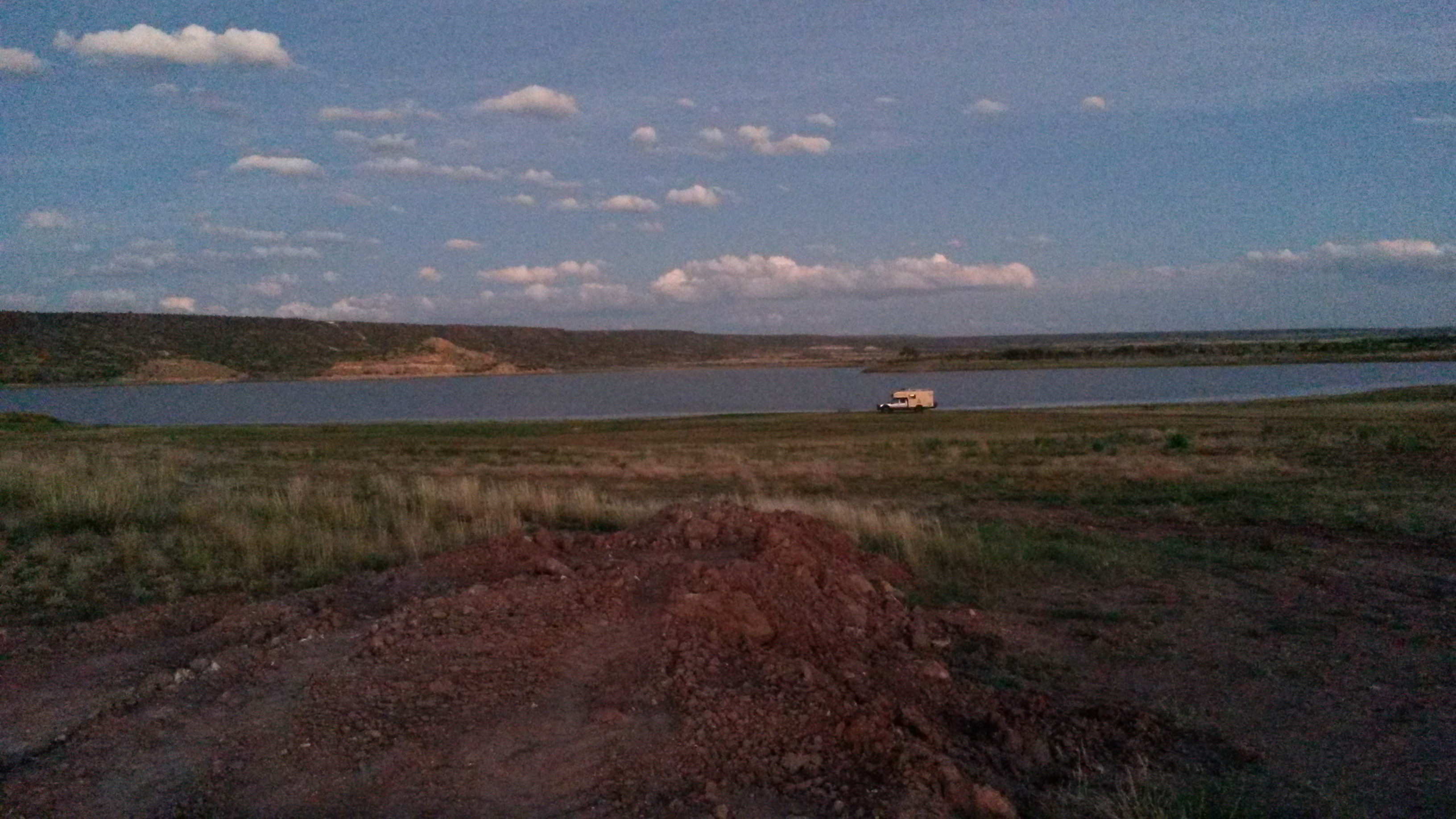 We intended to camp at El Morro National Monument, but we spent too much time hiking Chaco. The 9 spots at El Morro were occupied by the time we arrived. We instead continued across the Zuni Reservation and into Arizona, camping at Lyman Lake State Park. They had “beach” campsites, which meant you could park down by the water and had no hook-ups, which was perfect for us. It was not very crowded at the beach – lol.