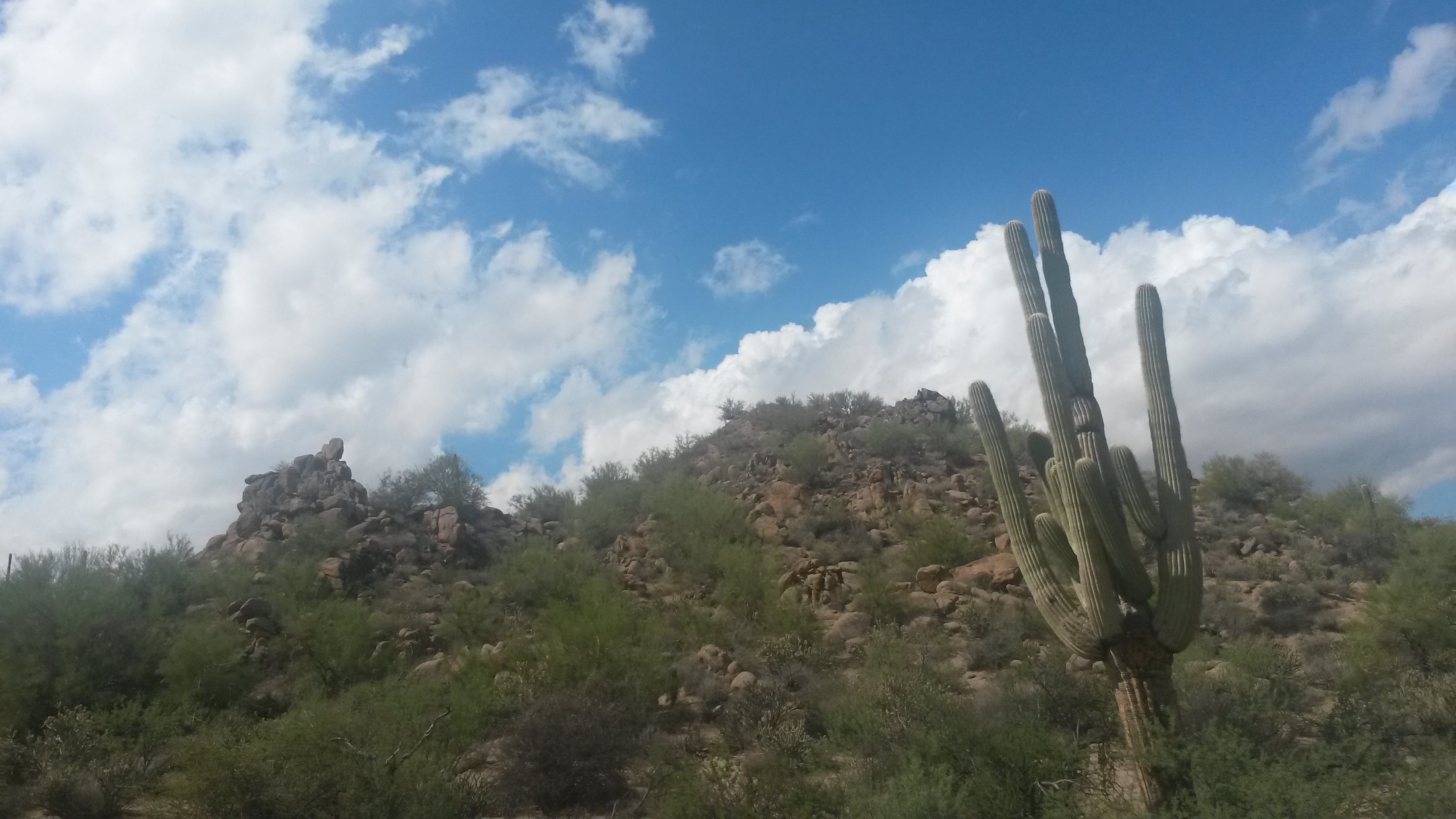 The sky broke open as we approached the valley and we passed by the first saguaro we’ve seen in many months.