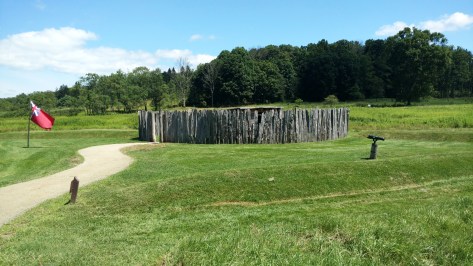 As we were driving, we passed Fort Necessity National Monument and had to stop. A young George Washington led some troops and surveyors in 1754 into the disputed western area to make a road so that British troops could advance and displace the French at Fort Duquesne, where Pittsburgh is now located.